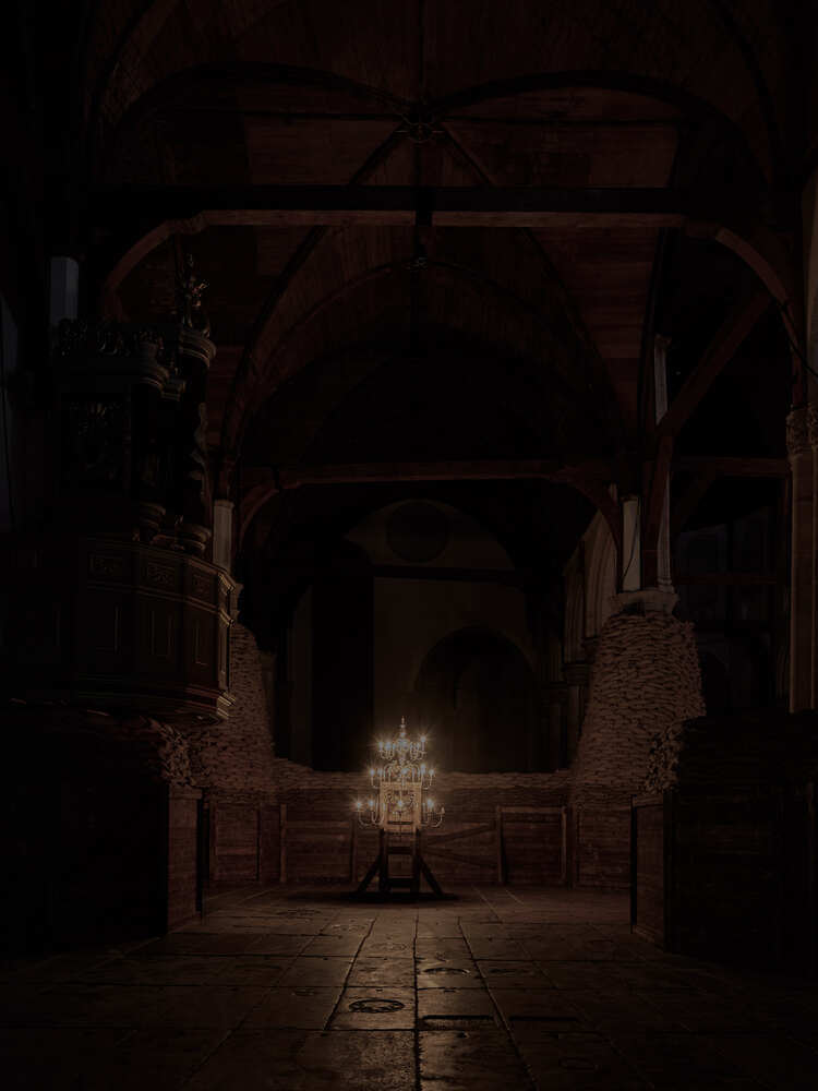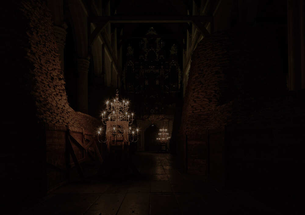 Adrián Villar Rojas: “De Oude Kerk is een andere verkenningsfase, waar ik menselijke obsessie met erfgoed, conservering en materiële accumulatie (goud, kunst, gebouwen, naalden, wat dan ook, maar vooral als het waardig, waardevol of verhandelbaar is) analyseer vanuit de ongrijpbaarheid en oneindige overvloed aan geluid. Tegelijkertijd stel ik een introspectieve reis voor door ons eigen persoonlijke verhaal via deze metaforische geschiedenis van geluid. Ik probeer altijd reflectie, emotie op gang te brengen, me op de wereld te concentreren vanuit negativiteit, afwezigheid en verlies, ongeacht met wat voor soort materie (tastbaar of niet) ik te maken heb."