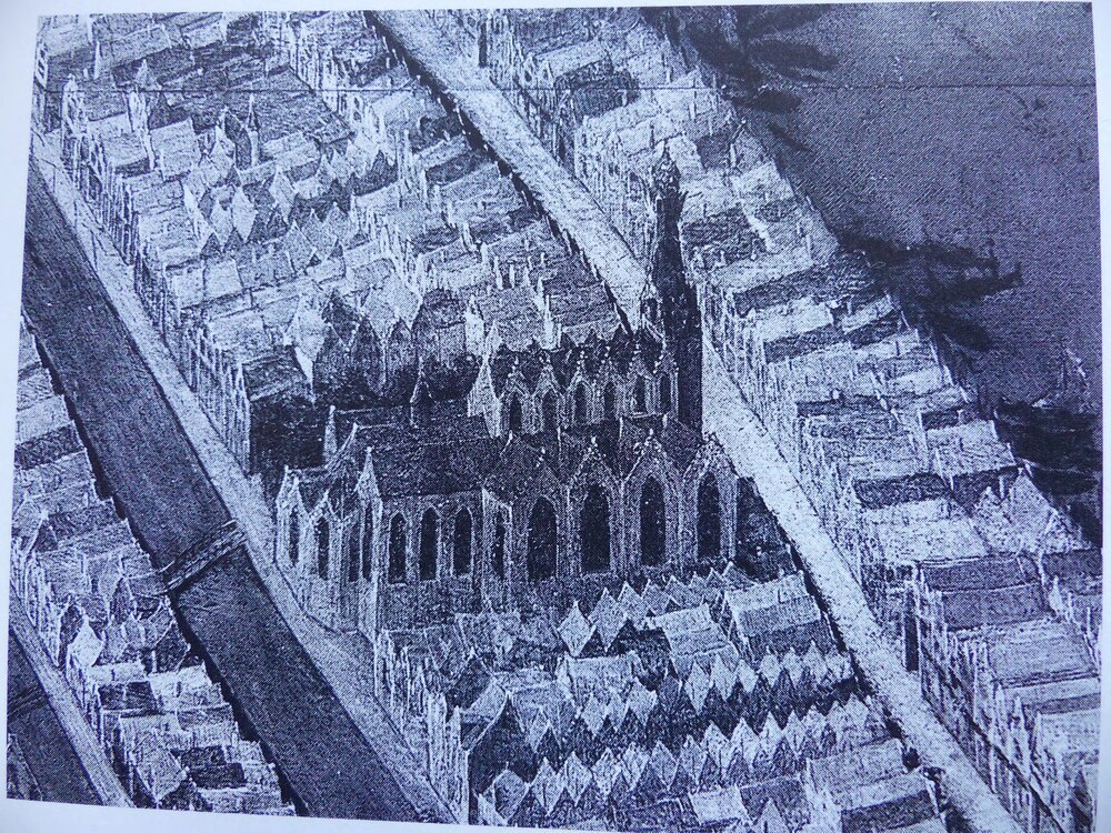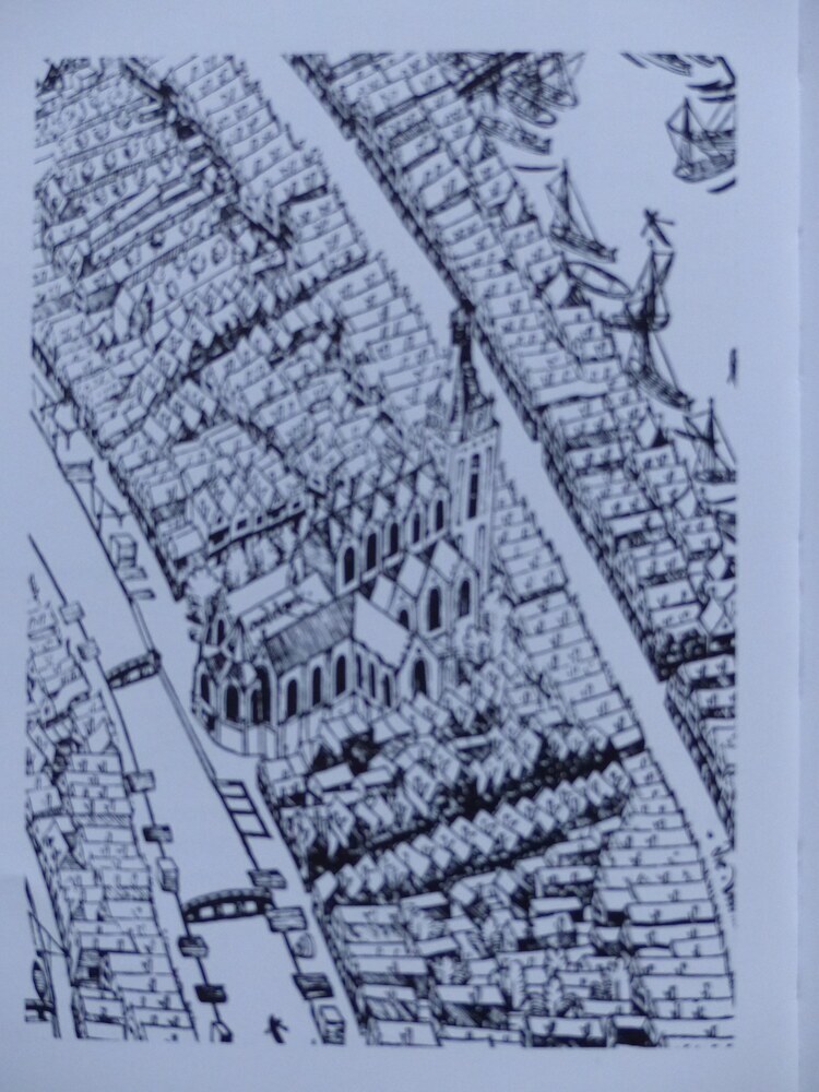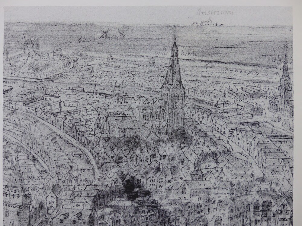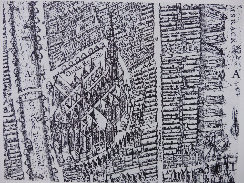 Vogelvluchtkaart van Amsterdam met de Oude Kerk
