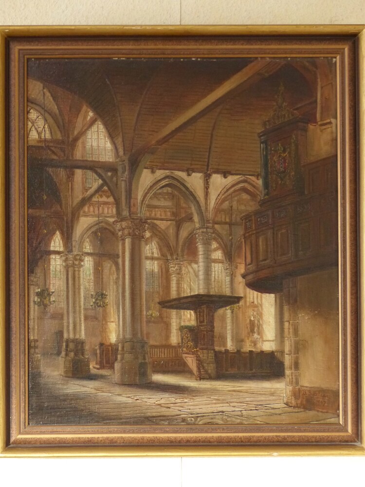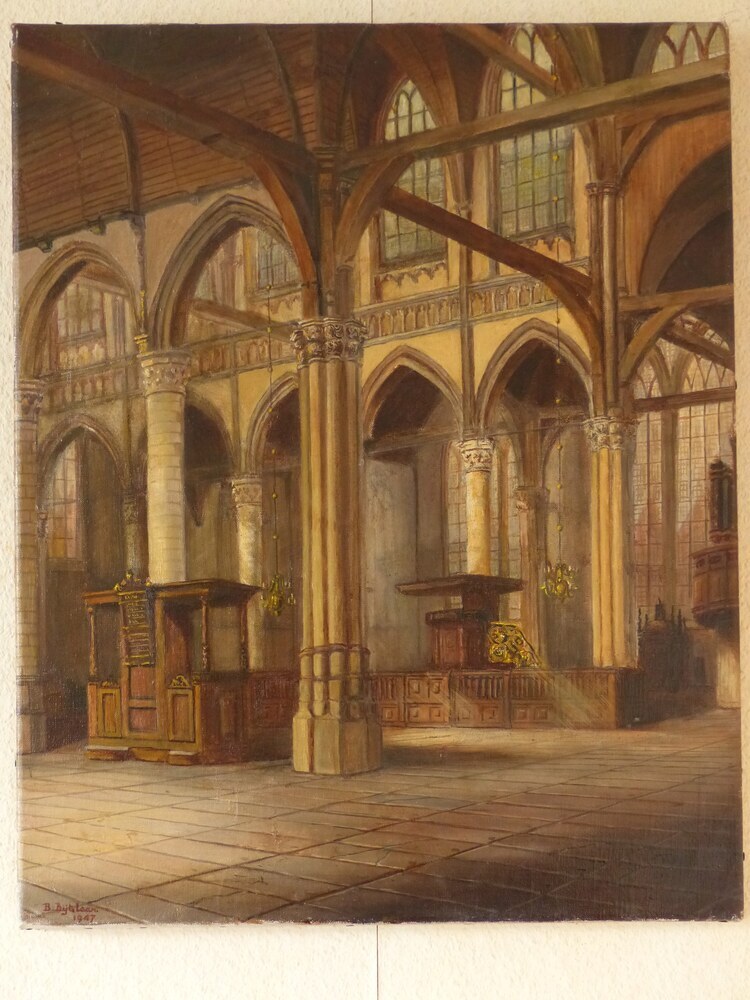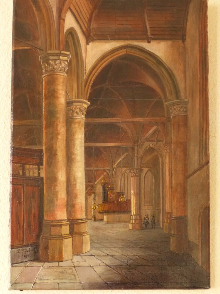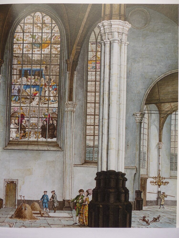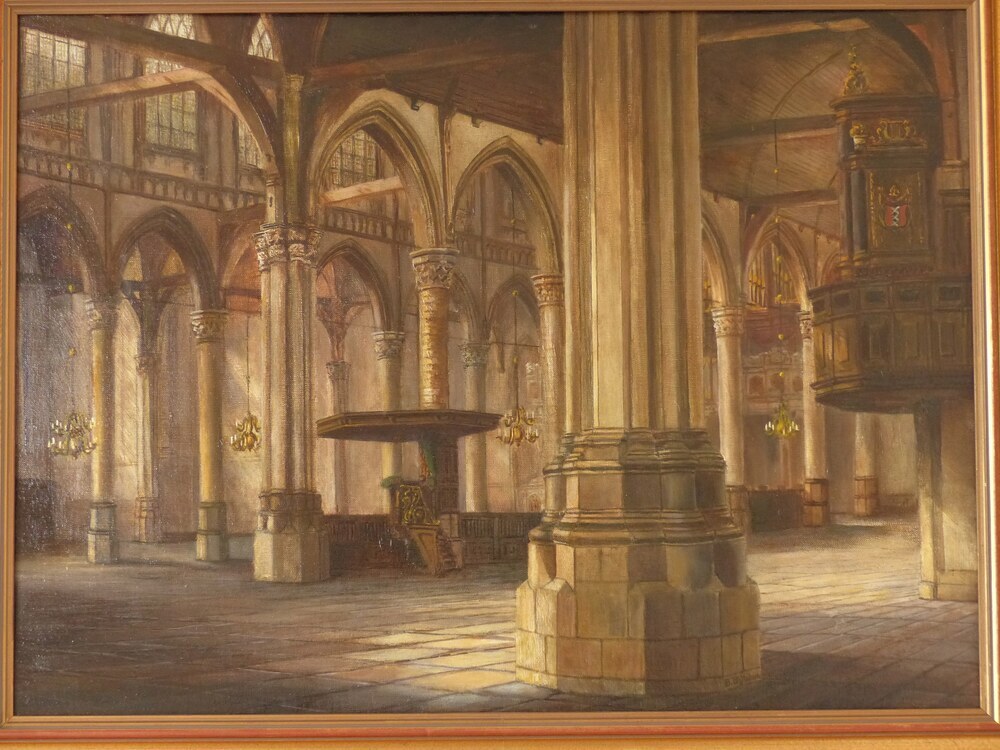 Schilderij van het interieur van de Oude Kerk met de noordelijke kooromgang