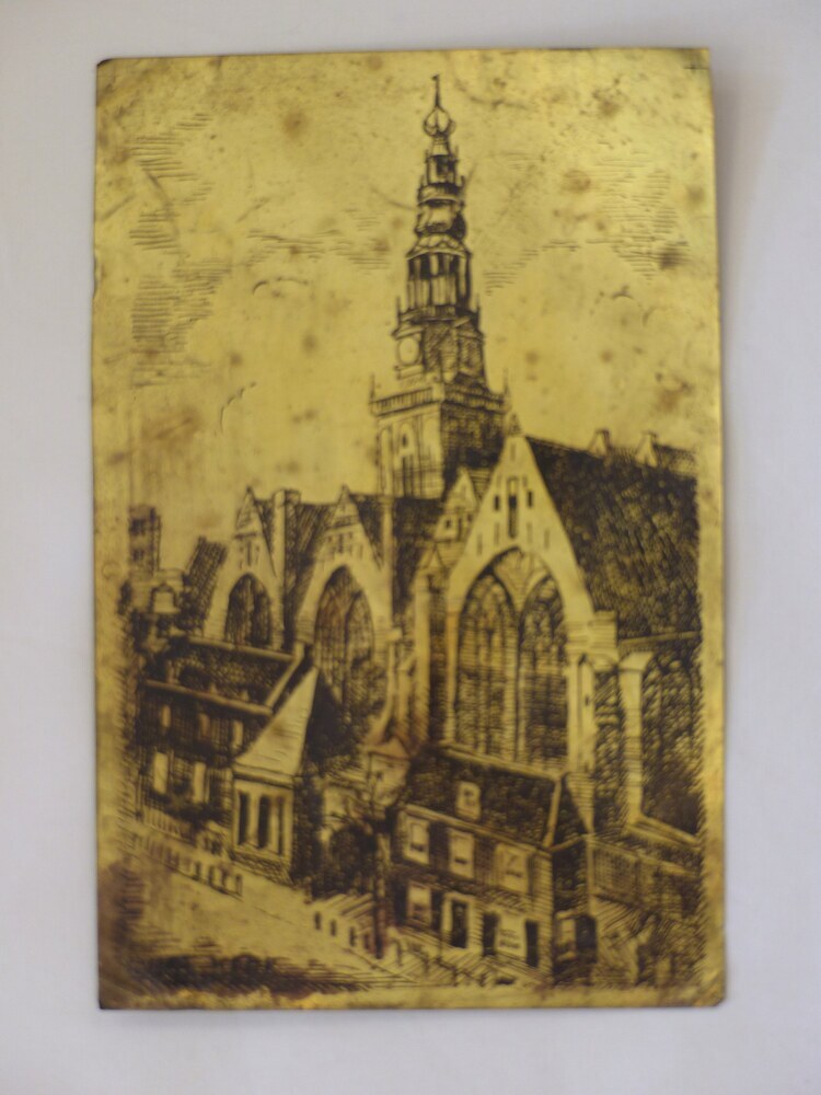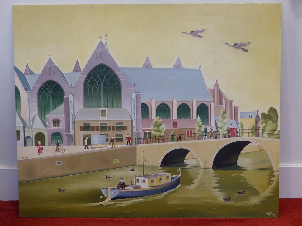 Schilderij van de Oude Kerk met noorderportaal en Heilig Graf