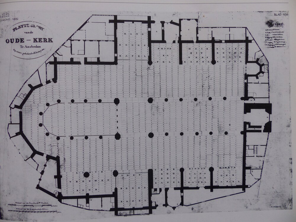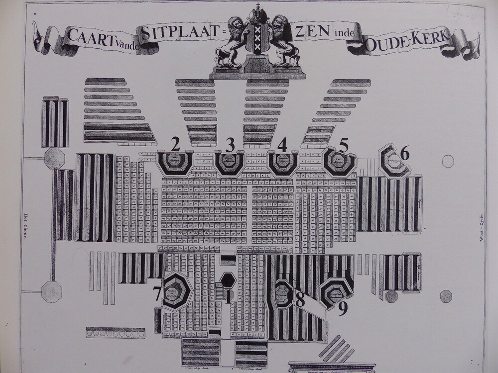 Plattegrond van de Oude Kerk met ingetekende zitplaatsen